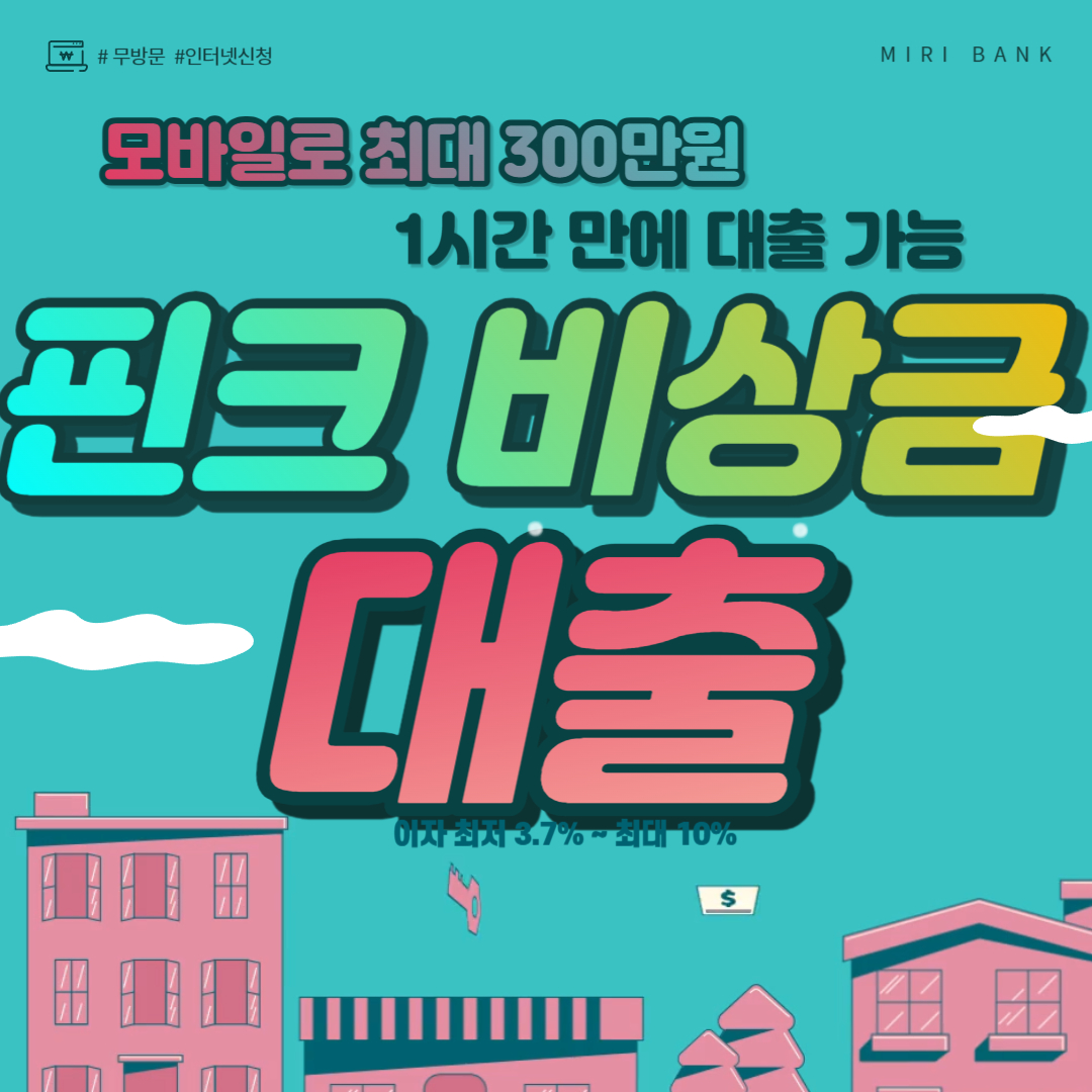 일반 대출처럼 몇천만원의 한도가 아닌 모바일로 최대 300만원의 소액을 원하는 사람들에게 핀크 비상금 대출을 추천합니다.